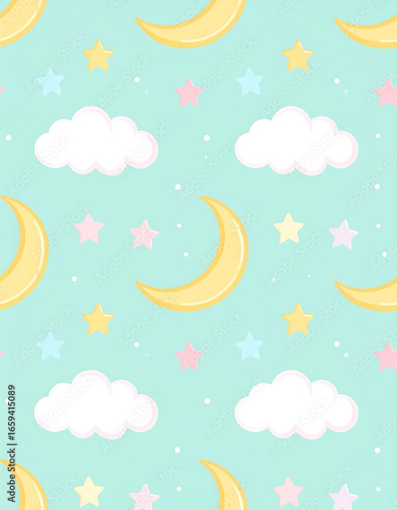 Fiolet - Pastel moon, stars, and clouds repeat on a teal background #1659415089