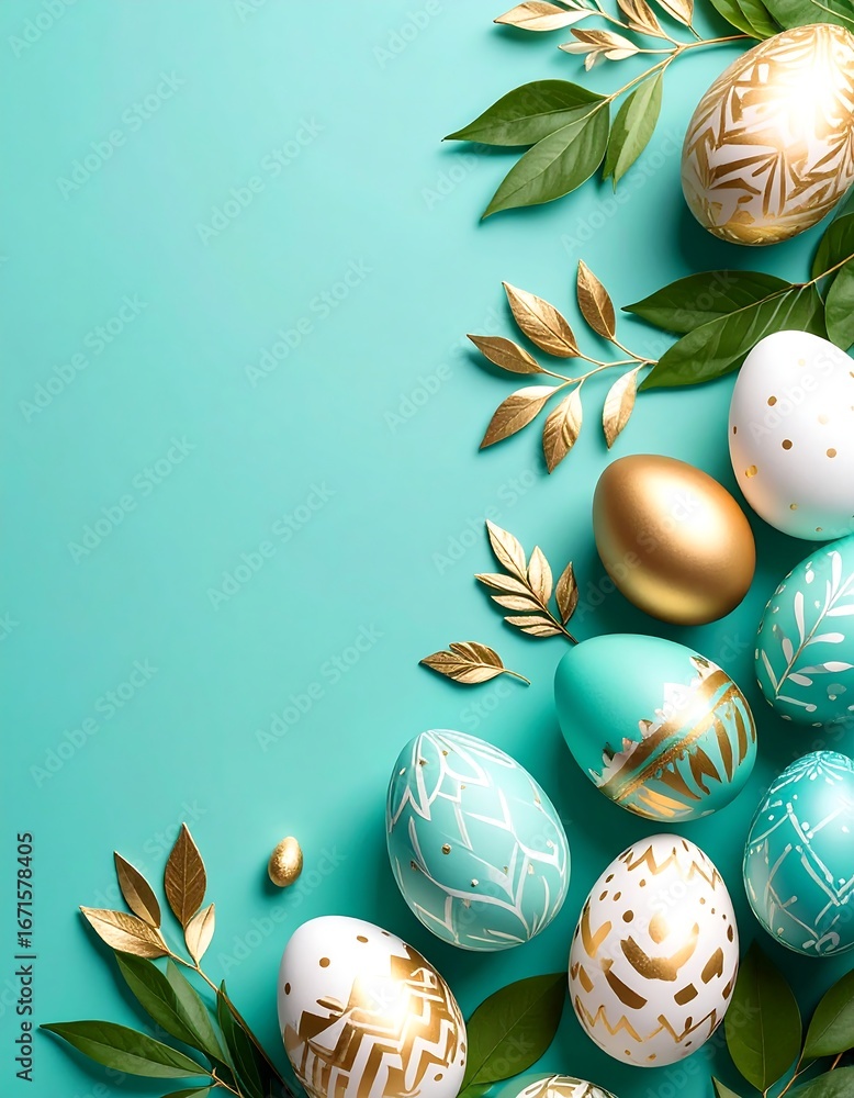 Fiolet - Teal Background Easter Eggs Gold Leaf Design #1671578405