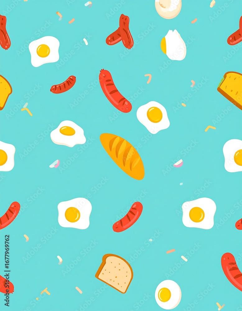 Fiolet - Breakfast food pattern on teal background #1677969762
