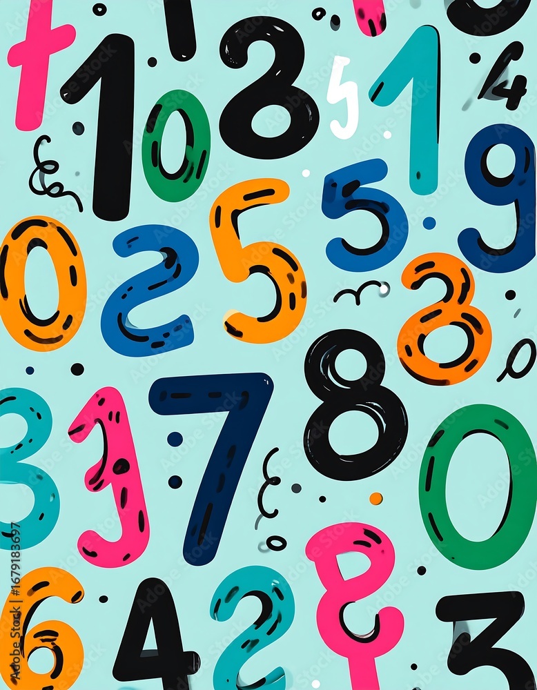 Fiolet - Colorful numbers pattern on light blue background. Playful design #1679183697