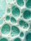 • Abstract, 3D-rendered, organic, cellular, bubble-like, pattern of interlocking, teal and white shapes
