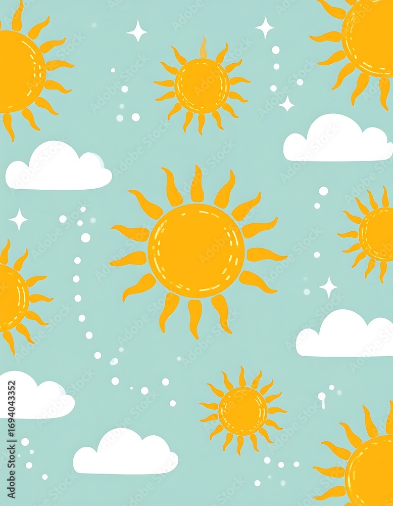 Fiolet - Cute sun and cloud pattern on pastel background #1694043352