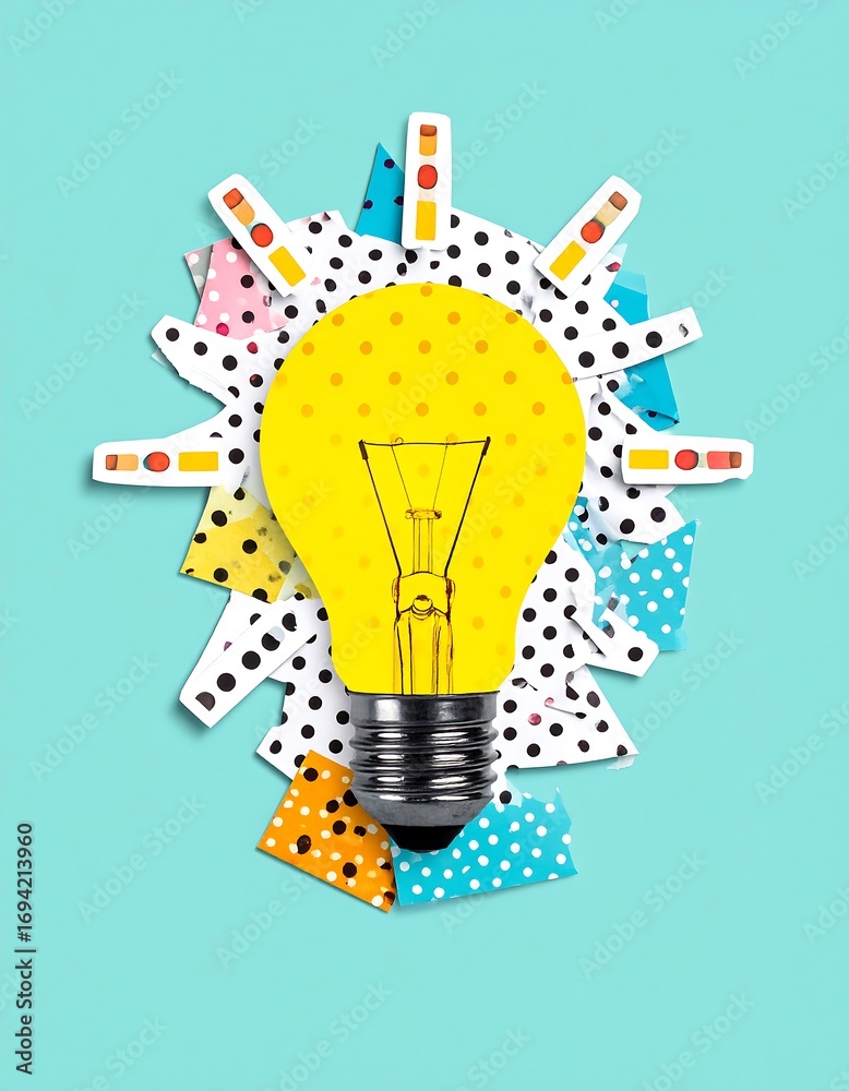 Fiolet - Colorful lightbulb surrounded by paper cutouts #1694213960