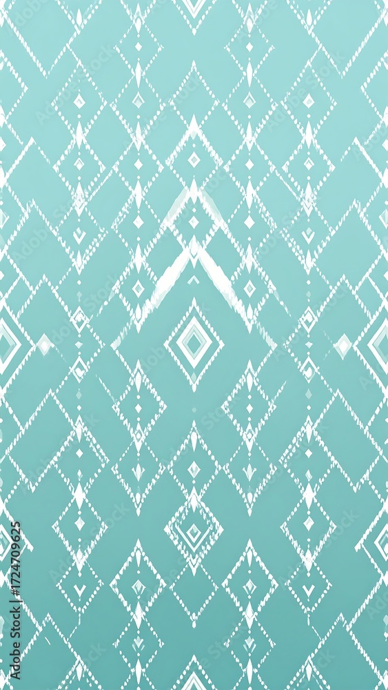 • Light teal background with repeating white geometric patterns of rhombuses and lines