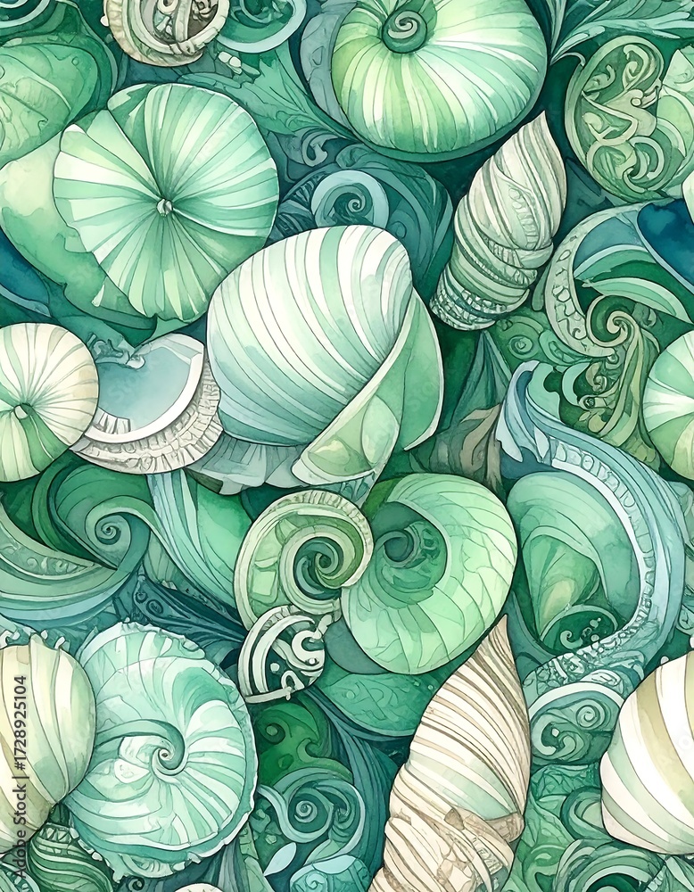 Fiolet - Seashell pattern with swirling teal and mint greens #1728925104