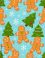 Fiolet - Seamless pattern of gingerbread men and decorated Christmas trees on a light blue background with... #1729946567
