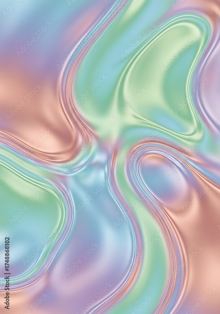 • Abstract fluid iridescent waves background with blurred pastel gradient colors and swirling shiny patterns creating a