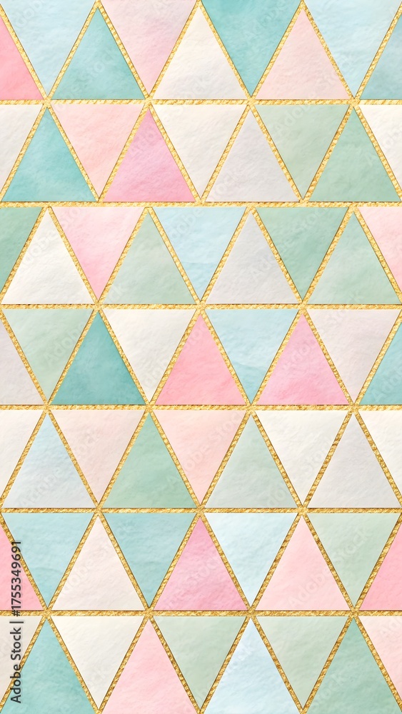 Fiolet - Pastel Triangles with Watercolor & Gold Accent. Repeating pastel paper triangles with watercolor... #1755349691
