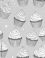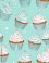 Colorful, repeating pattern of illustrated cupcakes on a blue background