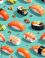 Assortment of colorful sushi pieces on a uniform turquoise backdrop