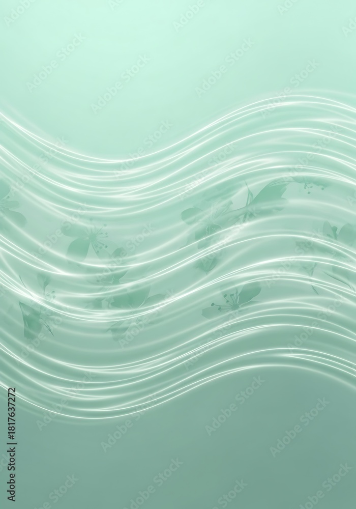 • Pastel Green Texture with Waves and Subtle Floral Silhouettes Design