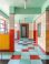 Fiolet - Colorful corridor interior geometric pattern retro hallway bright tiled wall checkerboard floor... #1853381526