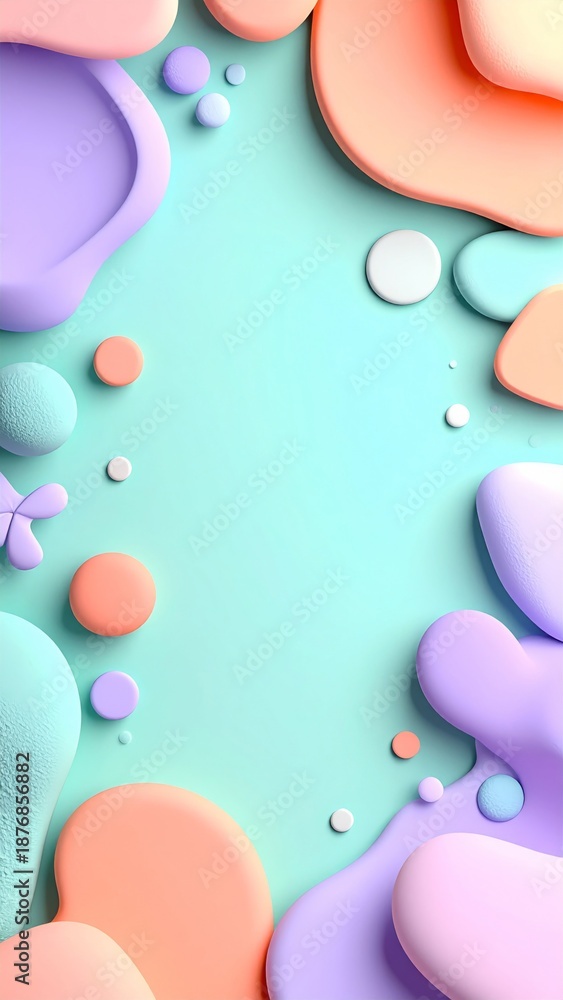 • Pastel Blobs Abstract Background in Light Mint Green Peach and Lavender