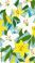 • Seamless pattern of vibrant white and yellow lilies with green leaves on a light blue backdrop