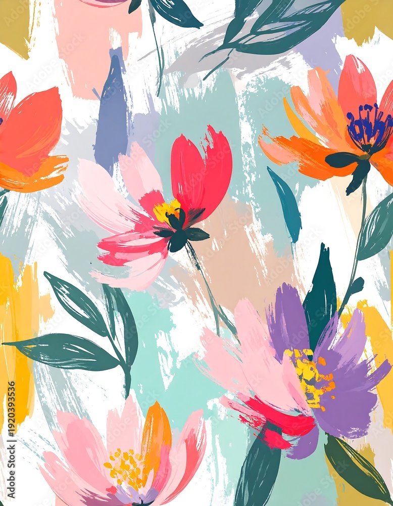 Fiolet - Vibrant floral pattern with abstract brushstrokes #1920393536