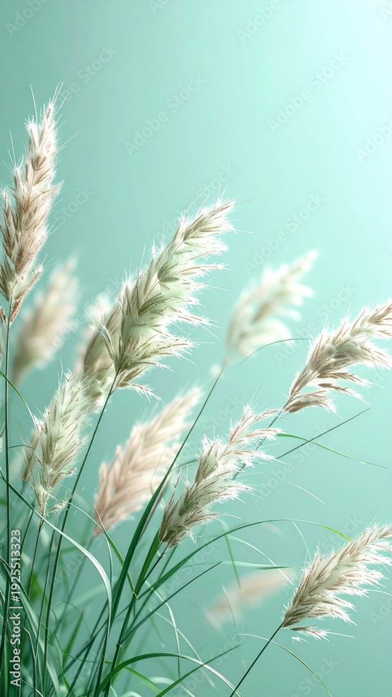 • Elegant Beige Plumed Pampas Grass Against a Light Green Gradient Background