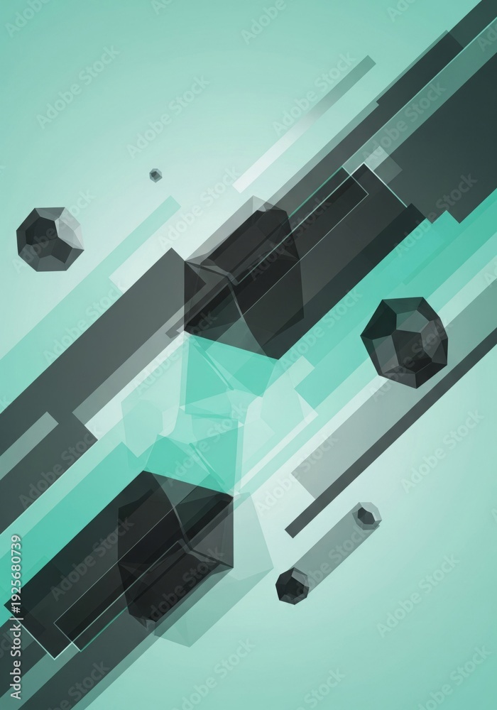 • Abstract Geometric Shapes Floating in Teal Gradient Background