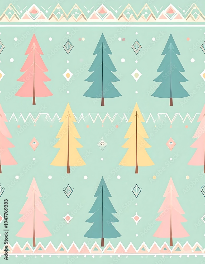 Fiolet - A festive pattern of colorful Christmas trees on a green background #1947769383