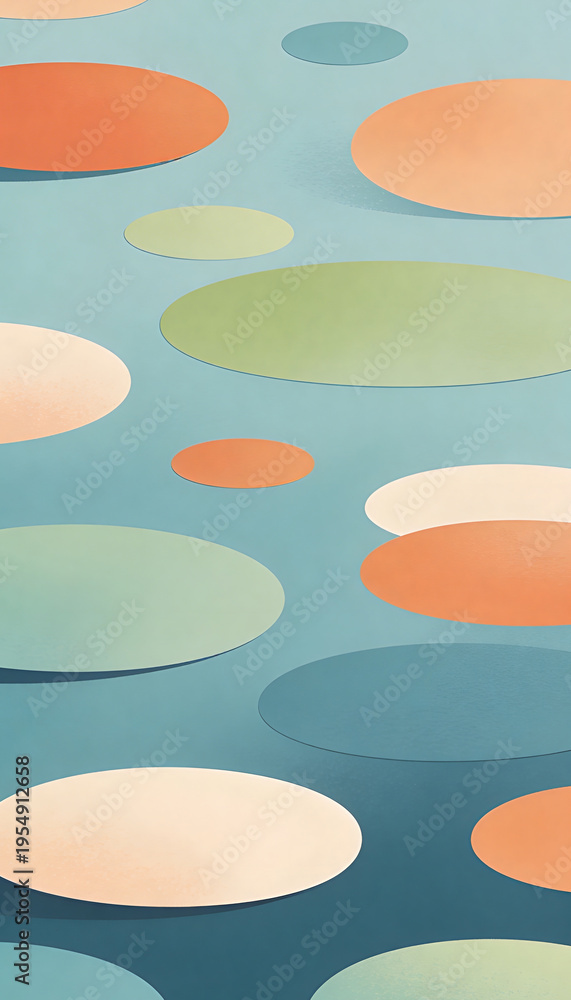 • Colorful abstract shapes floating on a serene background
