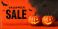Jesień - Dwie, świecące dynie z wyrzeźbionymi twarzami, nietoperze i napis "Halloween Sale" na tle... #1698877104