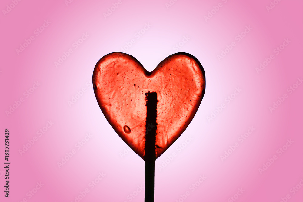 Różowy - Czerwony lizak w kształcie serca na różowym tle #1307731429