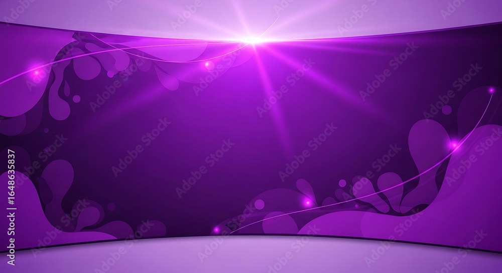 • Abstract violet background with light burst, dynamic curves and fluid shapes creating depth and
