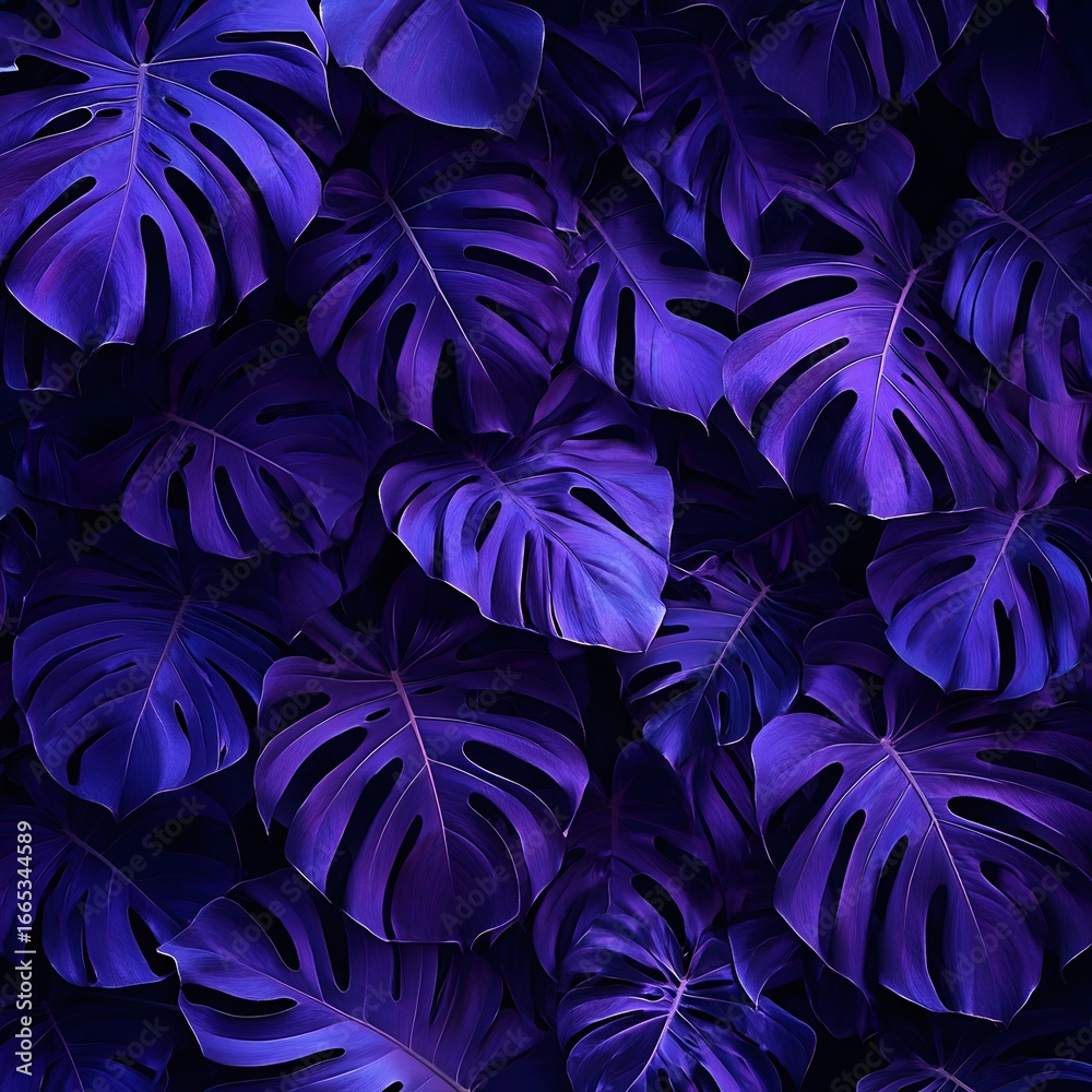 Chabrowy - Vibrant Purple Monstera Leaves Tropical Background #1665344589