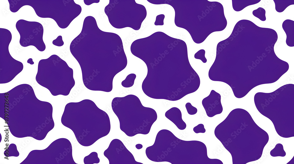 • Vibrant violet and white irregular splotches mimicking a dairy cow hide pattern filling the frame