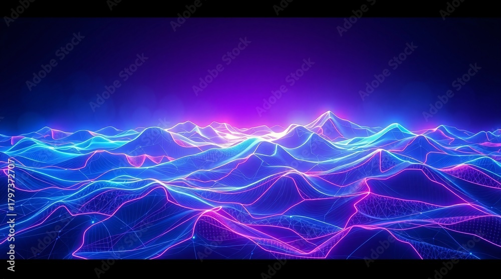 • Dark Abstract Background with Energetic Pink and Violet Waves.