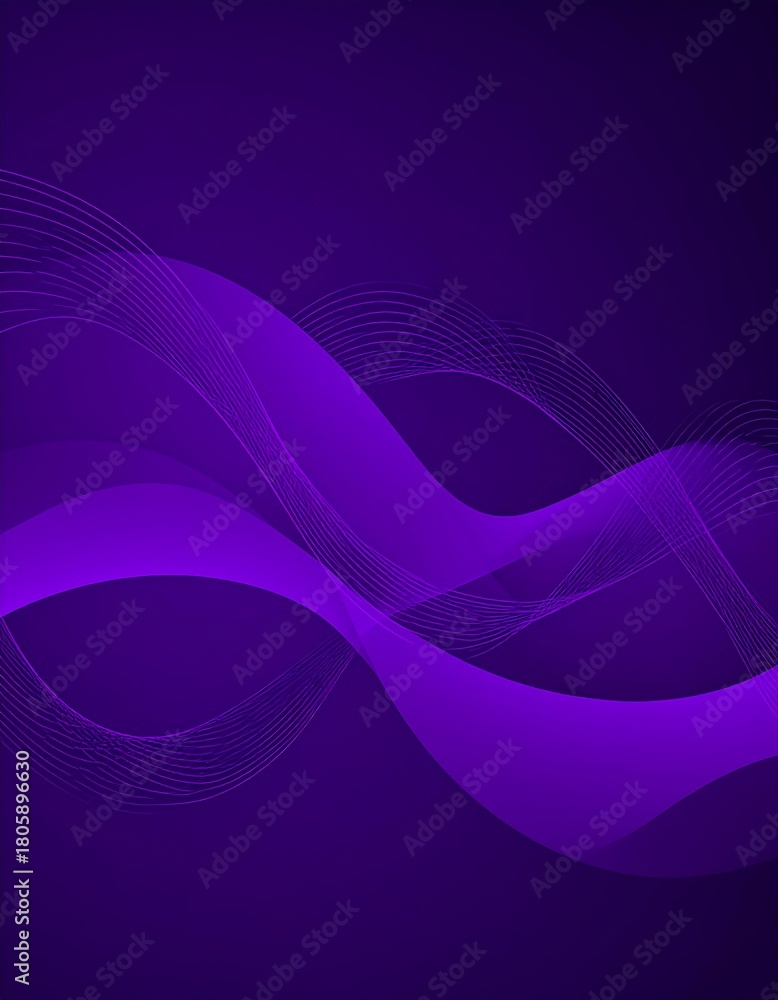 • Deep violet gradient background with flowing, layered curves and delicate wavy lines, creating a sense of movement and elegance