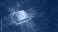 • Futuristic glowing purple CPU microchip on detailed circuit board background