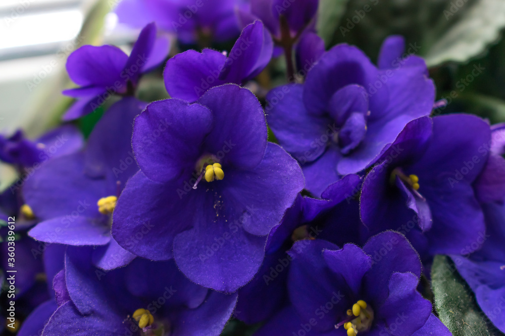 Chabrowy - Dark purple African violet flowers (Saintpaulia) closeup.Home floriculture,indoor... #360389612