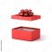 • Red present box open with white inside product display mock up showcase or blank red rectangle gift box with red ribbon bow isolated on white background with shadow creative idea concepts 3D rendering