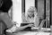 Warzywa - Old asian businesswoman holding glasses talking to employee office worker at table in company room. #1833590813