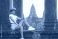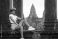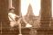• Angkor Wat Columns With Female Traveler Sitting, Cambodia Tourism Concept