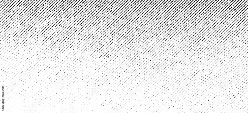 • Diagonal halftone gradient texture with soft black grain on transparent background. Faded dot pattern with minimal contrast.
