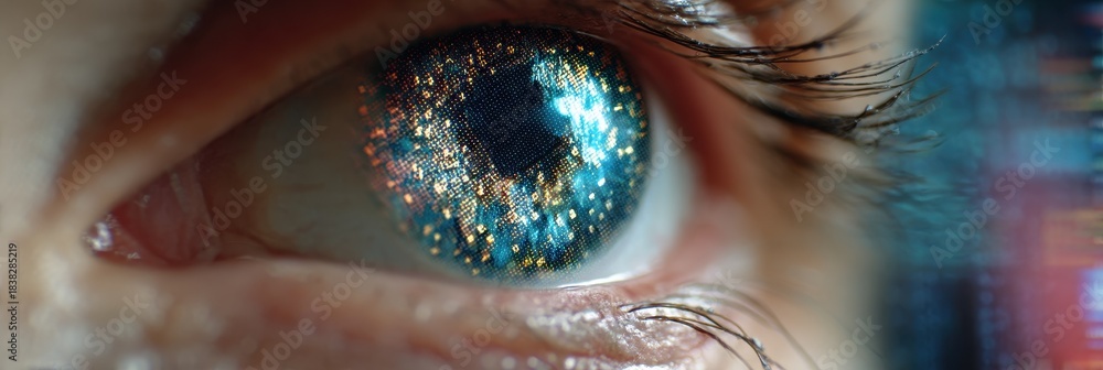 • Extreme close-up of human eye with futuristic digital iris pattern