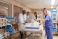 • Emergency, people and rush with patient in hospital, urgent medical response and critical care in corridor. Doctors, teamwork and staff transport stretcher to operation, blur and action in healthcare