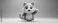 • Cute cartoon cat toy waves hello. Small fluffy kitty with big eyes stands on light green surface. Adorable plush animal poses friendly for greeting.