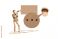 • Composite photo collage of happy man scream megaphone bubble communication faceless mouth open lips phrase isolated on painted background