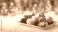 • Assorted festive chocolates and truffles decorated with snowflakes and stripes on a white plate, set on snow with warm bokeh lights in the background.