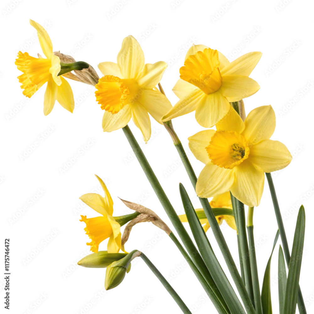 • yellow daffodil flowers isolated on transparent background Generative Ai