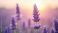 • Close-up photo lavender field with soft focus. Violet flowers bloom against blurred background, lit by warm sunlight. Floral beauty, springtime aroma, peaceful scenery, fresh countryside environment.
