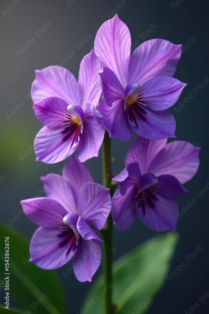 • Delicate petals of anggrek violet flowers softly unfolding , nature, soft, anggrek violet
