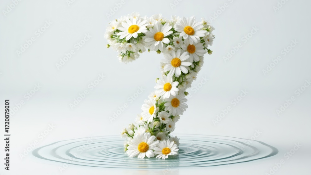 • Floral Number 7: Daisy Petals Forming Digit on Water Surface