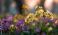 • Delicate flowers bloom in a spring meadow, bathed in warm sunlight with blurred background
