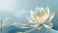 • An elegant depiction of a lotus flower with golden outlines against a light blue and teal backdrop with abstract wave-like lines