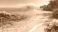 Kwiaty - Serene beach scene featuring clear turquoise water, gentle waves, and vibrant pink flowers along... #1787064904