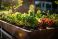 Kwiaty - Wooden raided beds in modern garden growing plants herbs spices vegetables and flowers near a... #628983007