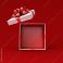 Blank white gift box mockup exhibition booth stand open or opened present box tied with red ribbon bow isolated on dark red background with shadow minimal creative idea conceptual 3D rendering